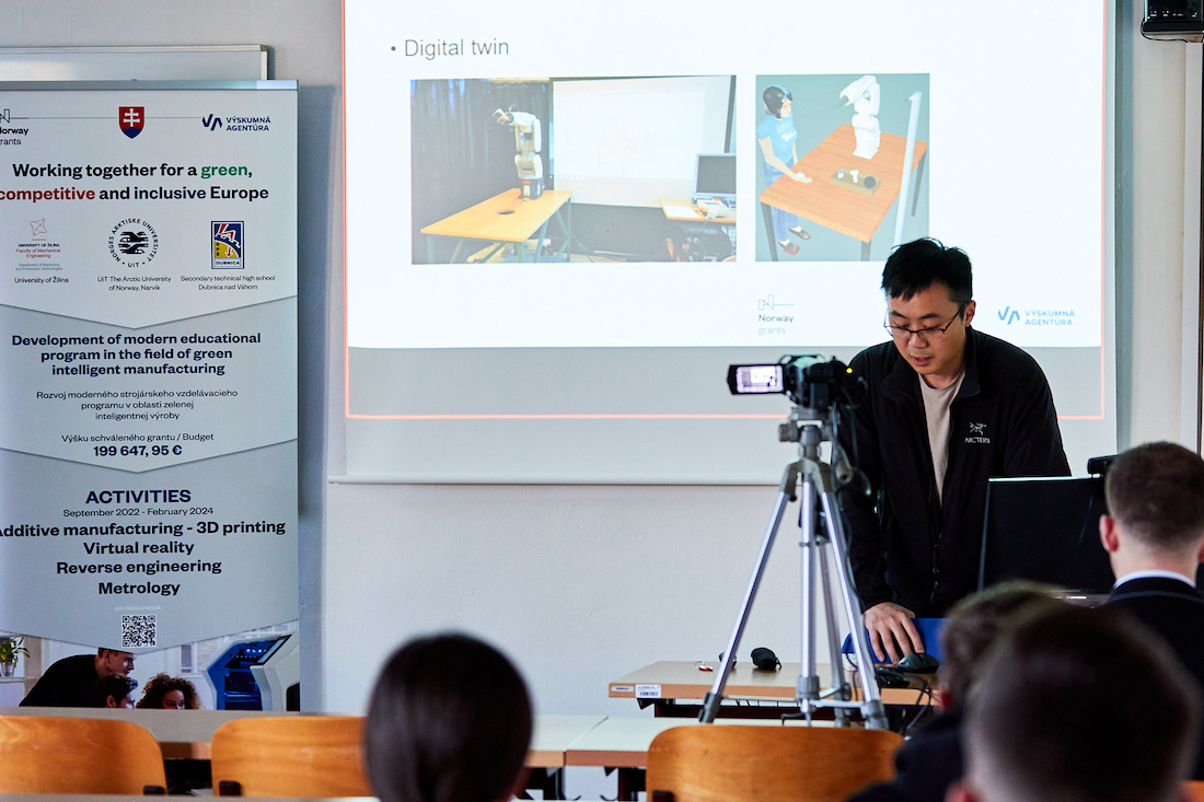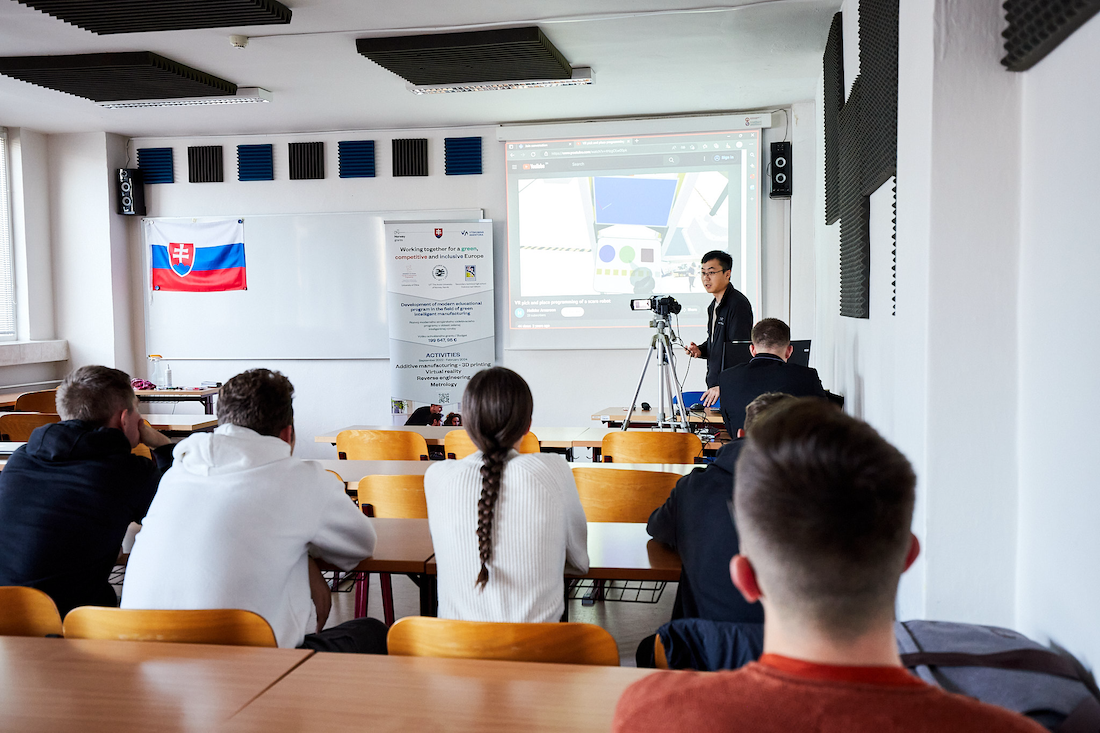Do you know how the famous Horalky are packed? Or do you know how spot welds are checked by ultrasound? What would you say to a bodywork colorfully designed by the car owner? And various questions 8.12.2023 answered Ing. Tomáš Gajdoš from ABB, s.r.o. to the students of the 3rd year of the Mechanical Engineering Department of the Secondary School of Engineering in Dubnica nad Váhom. With an interesting lecture he "guided" them through the possibilities of simulation of a robotic workplace and pointed out new possibilities in the field of logistics.